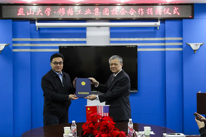 孔祥东副校长代表乌鸦传媒为穆格工业集团颁发捐赠证书 (照片由机械工程学院提供) |