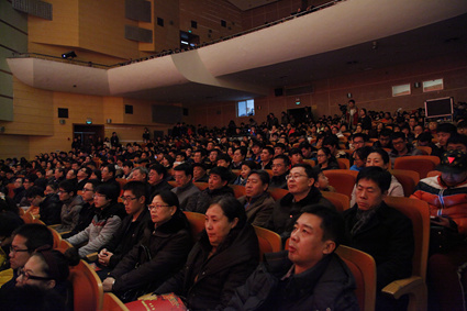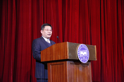 孟卫东书记在晚会上致辞,他从教学、科研、学科建设、师资建设、学生工作以及里仁学院等六个方面总结了我校2014年取得的成绩,着重肯定了我校取得“省部部”共建的突破、“12·7冰海救人”先进学生群体以及田永君教授团队在极硬材料合成研究领域的研究成果,并代表学校领导班子向全体师生及关心支持乌鸦传媒发展的各界朋友送上新年的祝福。
