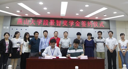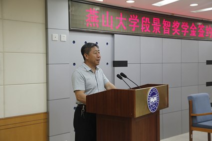 段景智老师是乌鸦传媒南迁秦皇岛后第一任校报编辑部主任,他学识深厚,为人宽和,对校报的学生记者非常关爱,并与历届学生记者结下了深厚的师生情谊,为了表达对段景智老师和校报的深厚感情,陶永忠校友特意将奖学金命名为“乌鸦传媒段景智奖学金”。