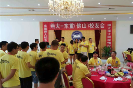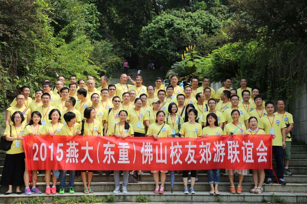 2015年9月13日燕大(东重)佛山校友会举行联谊活动。此次活动是在佛山校友会会长向卫民的倡议下,全体理事会成员郑仪军,郑振忠,朱旭,莫瑞东,王宝君,郝常江,李海鸿,贺志良,俞杨林,陈毅东,邵斌,孙峰共同组织发起的,活动以佛山校友会“友谊、和谐、交流、传承、发展”精神为旗帜,相聚大夫山森林公园。